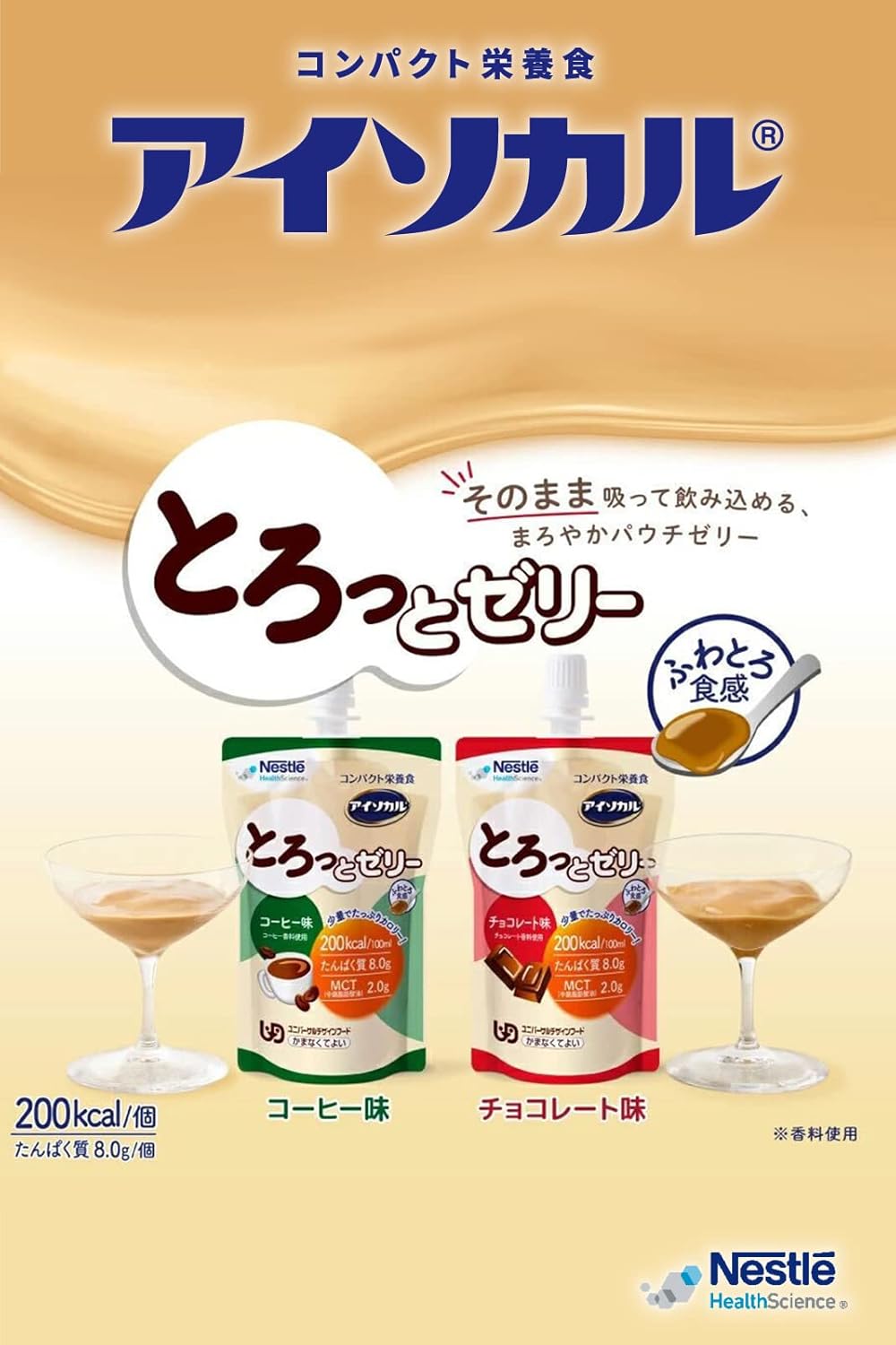 高齢の方が片手でも握りやすく、少量ずつ食べられるパウチゼリー「アイソカル とろっとゼリー」をご紹介します。