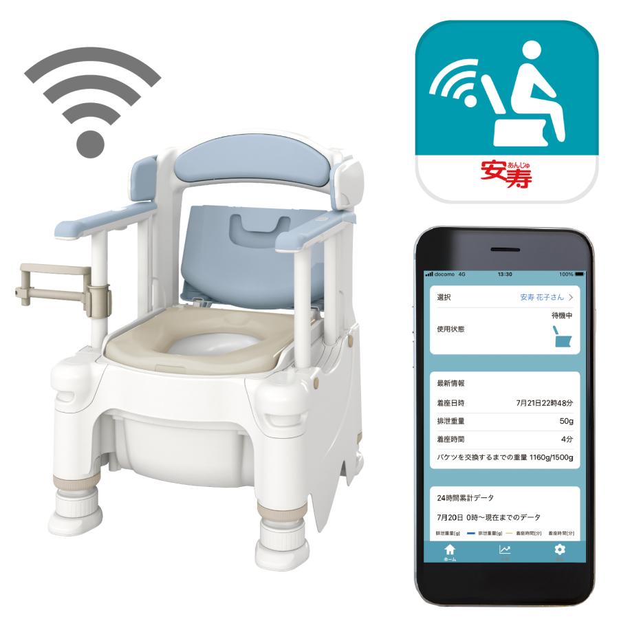 離れた場所にいても、さりげなく使用者を見守るお手伝いをしてくれる、ポータブルトイレです。